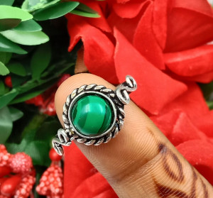 Malachite Gemstone 925 Sterling Silver Plated Dainty Ring