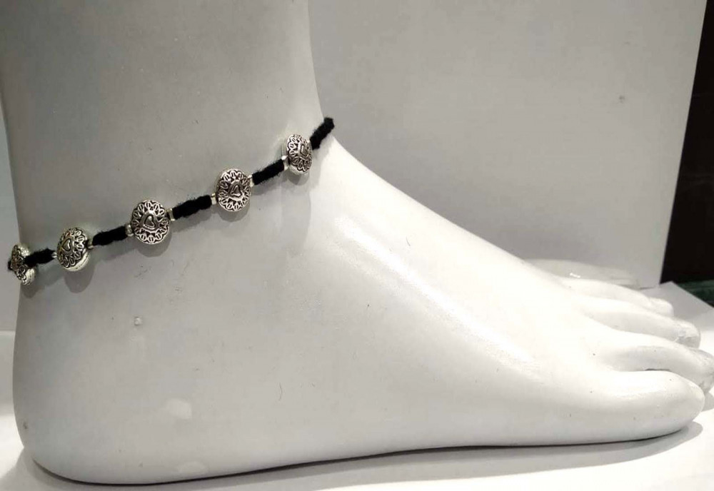 Cute Girls and Women, size adjustable threaded Anklet Barefoot Sandal Beach Foot Jewelry Cute small black threaded single anklet made with black cotton thread and decorated with silver unique Oxidised beads , Perfect For daily wear. Ideal for self use,an excellent gifting option. Stay As It Is, Very Demandable, Light weight, Easy to wear.
