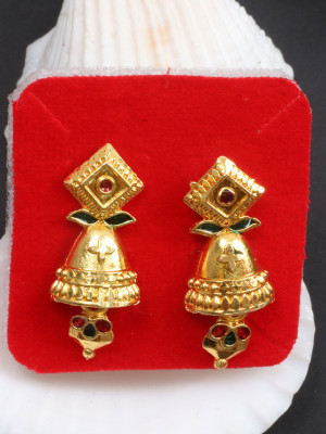 Add a touch of elegance and culture to your look with these Delicate Golden Ethnic Stud Earrings. These earrings feature intricate designs, creating a fascinating blend of traditional and modern styles.