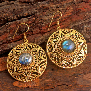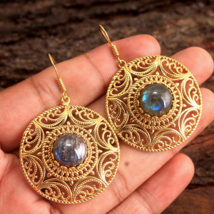 Labradorite Gemstone, Women Earrings, Handmade Jewelry, Gold Plated Silver Earrings, 925 sterling Silver Jewelry