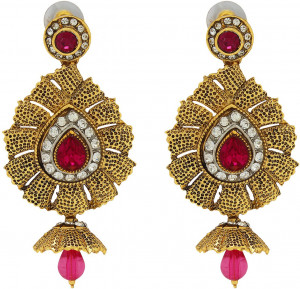 Get a perfect blend of traditional and contemporary style with these yellow gold toned earrings. Embellished with gleaming color stones it will definitely provide a special grace to your look.