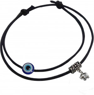 EvilEye and ELEPHANT hanging two layer thread anklet