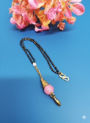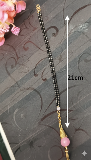 Embrace a beautiful blend of tradition and contemporary style with our exquisite pink stone mangalsutra bracelet. This elegant piece features a classic, delicate band of shimmering black beads, reimagining the sacred mangalsutra for the modern woman to grace her wrist.Perfect for daily wear or special occasions, this bracelet is designed to be a versatile and cherished symbol of love and style.