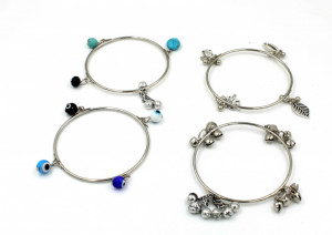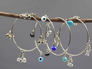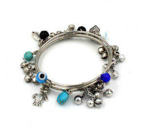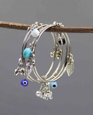 "Oxidized Charm Bangles Set with Turquoise, Evil Eye, and Ghungroo Beads - GURJARI JEWELLERS