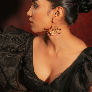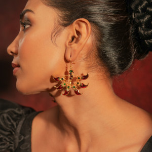 The mor-pankhi is an emotion associated with abundance of peacocks dancing in the rain, of the sweet smell of earth when it absorbs the first drop of love from the sky!! This unique work of wearable art will add style to your ensemble with ease! Since each jewel is hand crafted, small variations may occur from piece to piece