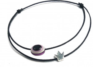 PURPAL EVIL EYE and CROWN OXIDISED beads with BLACK Cottan Thread Adjustable Anklet